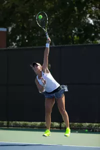 In singles, Anna Ulyashchenko earned a 7-5, 7-6 (5) victory over No. 79 Gabriella De Santis of Ohio State while Samantha Asch defeated OSU's 80th-ranked Olivia Sneed 6-3, 6-4. On the day, Chandler Carter also took a three-set win over Ferny Angeles Paez, 4-6, 7-6 (5), 6-4, and Luisa Fernandez capped the day of singles with a 6-3, 2-6, 1-0 (7) win over Andrea Ballinger.