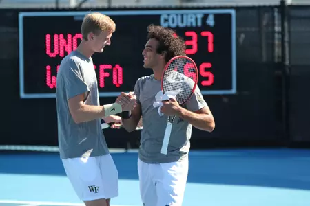 Wake Forest dropped its first set of the main draw in doubles action, but still came out on top. The third-seeded and third-ranked duo of Mansouri and Seraphim took down an ACC pairing in No. 33 Jack Murray and Ronnie Schneider of North Carolina, 6-3, 5-7, 1-0 (10-4). The Demon Deacons have now won 16 of the 17 sets played in Tulsa.