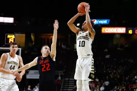 The Deacs (2-0) shot 50 percent (13-26) from beyond the arc, and their 13 made three pointers are tied for 8th-most in single-game program history.