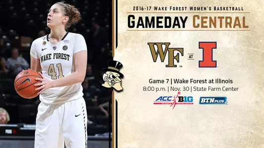 • Wake Forest continues its three-game road swing at Illinois on Wednesday night at 8 p.m. ET when it battles the Fighting Illini in the ACC/Big Ten Challenge.