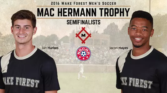 KANSAS CITY, Mo. – Wake Forest men's soccer senior captains Jacori Hayes and Ian Harkes have been tabbed MAC Hermann Trophy semifinalists, the NSCAA announced Tuesday.