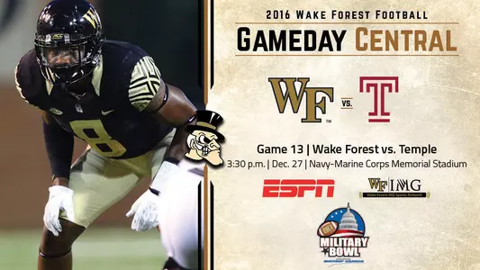 Wake Forest will face Temple in the Military Bowl presented by Northrop Grumman on Tuesday, Dec. 27 at 3:30 p.m. at Navy-Marine Corps Memorial Stadium on the campus of the U.S. Naval Academy in Annapolis, Md.