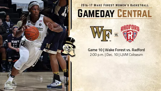 • Wake Forest will host Radford on Saturday, Dec. 10, inside LJVM Coliseum looking to run its home record to 6-0 this season. Opening tip is set for 2 p.m.