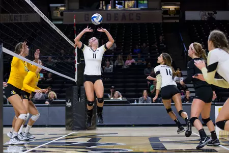 The second set was just as evenly matched as both teams found success siding out. Neither team could gain an advantage of more than two points until a kill from Long gave the Deacs the set, 25-22. After the break, it was all Wake Forest. The Wildcats recorded eight attack errors on nine kills to total a .034 hitting percentage in the third set. The Deacs had a clean set, recording only one attack error to earn the 25-14 victory and a sweep of Davidson. Wake Forest's victory was the first for head coach Bill Ferguson, who is in his first season at the helm of the Demon Deacons.