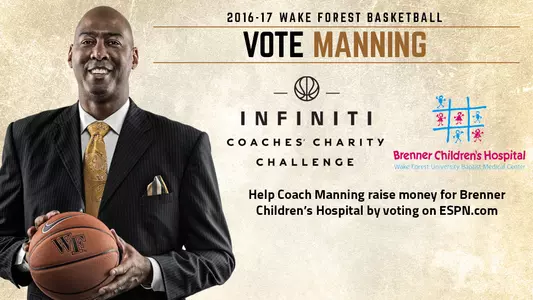 WINSTON-SALEM, N.C. – Wake Forest head coach Danny Manning will participate in the 2017 Infiniti Coaches' Charity Challenge. The challenge, which begins Monday, features 48 coaches from around the country competing to raise money for a charity of their choice.