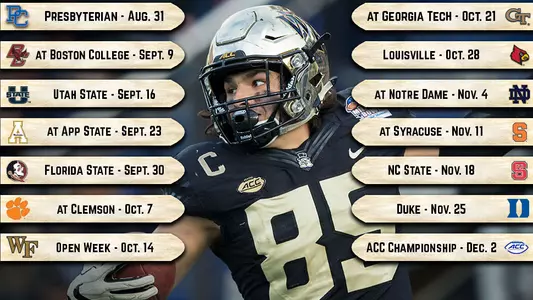 Wake Forest opens the schedule on Thursday, August 31 at BB&T Field against Presbyterian. The Demon Deacons begin ACC play on Sept. 9 at Boston College.
