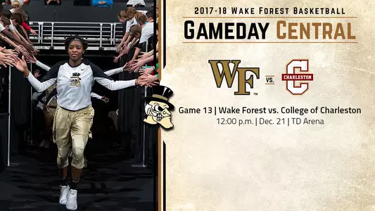 The Wake Forest women's basketball team closes out nonconference play on Thursday, Dec. 21 on the road at the College of Charleston. Tip-off is set for 12 p.m. inside TD Arena.