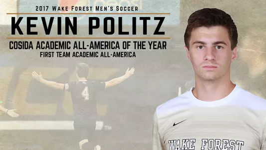 WINSTON-SALEM, N.C. – Wake Forest senior Kevin Politz was named the Division I Men's Soccer Academic All-America of the Year by CoSIDA, also earning a first team Academic All-America spot, on Thursday.