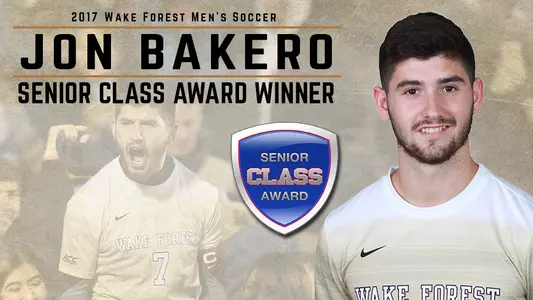 An acronym for Celebrating Loyalty and Achievement for Staying in School®, the Senior CLASS Award—presented annually in 10 NCAA sports—focuses on the total student-athlete and encourages students to use their platform in athletics to make a positive impact as leaders in their communities. Bakero is the third overall Wake Forest student-athlete to win the Senior CLASS Award behind Hayes and Sam Cronin in 2008 - all from the men's soccer program.