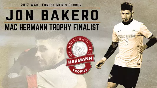 ST. LOUIS -- Wake Forest senior Jon Bakero was named one of three finalists for the 2017 MAC Hermann Trophy, given to the top player in college soccer.