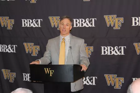 "This past week I was in a bunch of houses, different high schools and The College Football Hall of Fame dinner in New York. It's nice to get some compliments when you see other people in the game. I think I can see it in recruiting. I feel like we have a good class. Like always, there are people coming in and trying to flip our recruits. Maybe in the past, some kids would be more inclined to switch, but I think they see what we've done and the games we've won and the facilities we're building and they think that Wake Forest is even more of a solid choice now than when they made it. I do feel that there is an uptick in recruiting. We were on national TV a lot this year and we sold out home games. Last year, we got to a bowl and this year we took another step forward. It showed up in our home attendance and sell out games against NC State, Florida State and Louisville. I think we have a much more concrete message and we're starting to make those steps that we claimed we would make two or three years ago. The next claim is a little more challenging and we're going to get there."