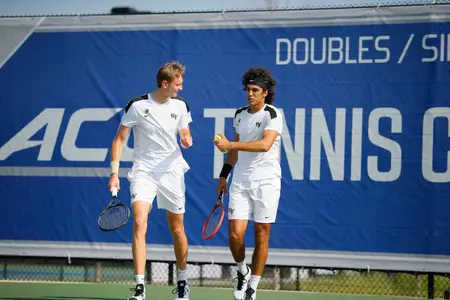 Coming down to the top doubles spot, the fourth-ranked duo of Skander Mansouri and Christian Seraphim found themselves in a battle with the No. 54 duo of Tom Fawcett and Yale Goldberg. Both sides would hold serve until the final game of the set. Up 6-5, Mansouri and Seraphim were up 40-0 in the game before clinching the doubles point when their opponent double faulted, giving the Deacs a 1-0 lead into singles.