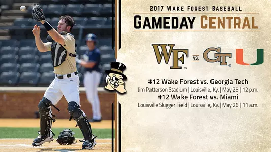 No. 12-ranked and third-seeded Wake Forest opens the ACC Championship with games against 10th-seeded Georgia Tech (moved to Thursday at noon on Louisville's campus) and seventh-seeded Miami (moved to Friday at Louisville Slugger Stadium).