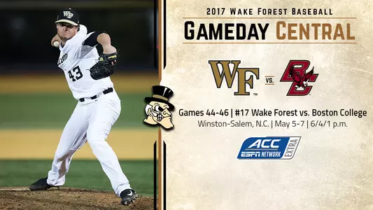 No. 17 Wake Forest returns from its break for exams, playing host to Boston College for a three-game ACC series May 5-7.