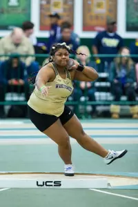 Janese Lynch and Alva Hicks finished fifth and sixth in the women's shot put, respectively. Lynch threw 14.32m on her fourth throw of the day while Hicks threw a personal-best mark of 13.88m. That mark replaces her previous high of 13.67m (44-10) set last weekend at the Wake Forest Invitational.