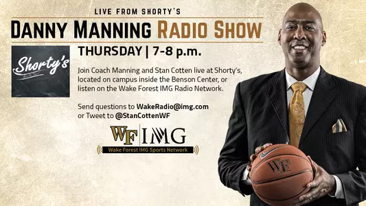 WINSTON-SALEM, N.C. -- The Danny Manning Show airs tonight, Thursday February 15, from 7-8 p.m. and will be broadcast from Shorty's, inside the Benson Center on campus.