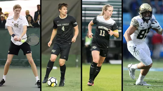 GREENSBORO, N.C. – Four Demon Deacons have been selected as 2018 Weaver-James-Corrigan Postgraduate Award recipients, the Atlantic Coast Conference announced Wednesday, Feb. 28. Christian Seraphim of men's tennis, Kevin Politz of men's soccer and Maddie Huster of women's soccer received the award while Cam Serigne of football was named an honorary recipient.