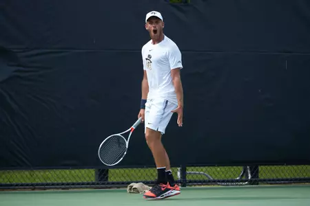 Senior Skander Mansouri, ranked No. 38 in the ITA singles rankings, was off the court first in singles with a 6-4, 6-3 win against Aron Hiltzik on court three. Putting the Deacs up 3-0, Bar Botzer defeated Aleks Kovacevic, 6-4, 7-5, on court four. Mansouri improved to 25-6 on the season, while Botzer upped his win streak to 16 matches for an overall mark of 35-6.